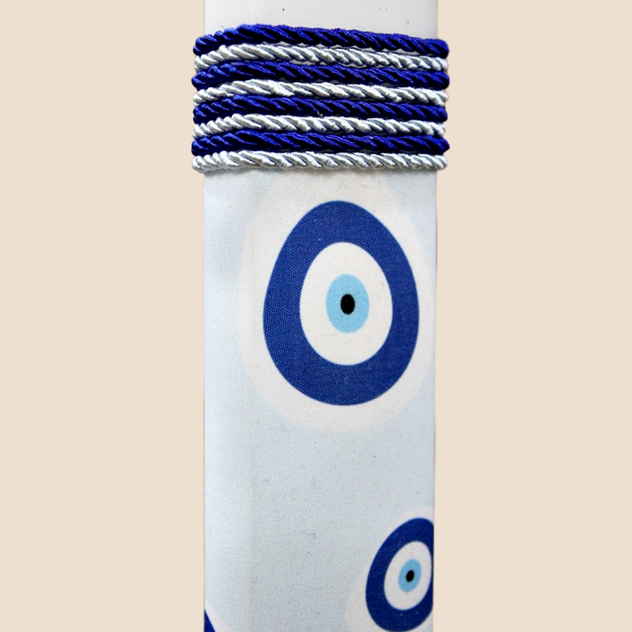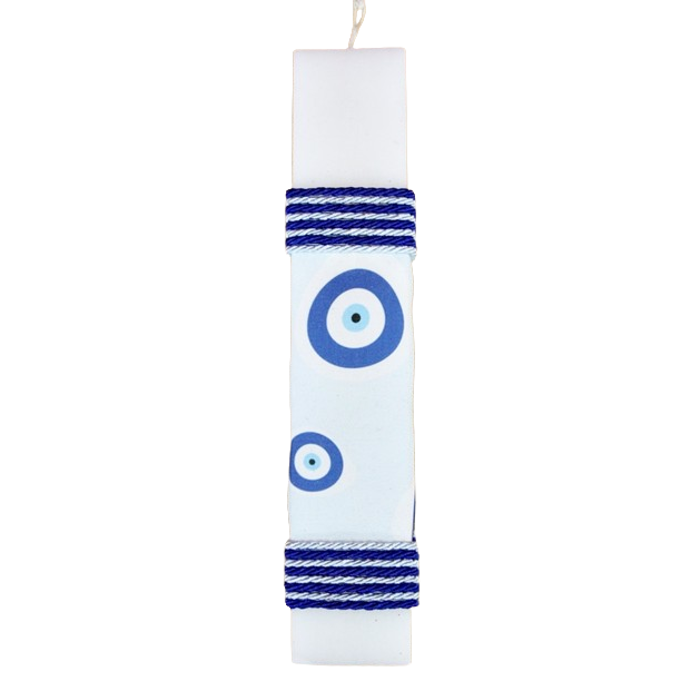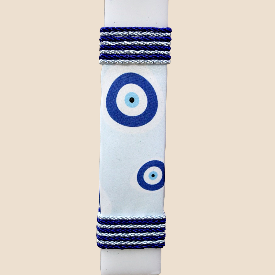 Diese Saison präsentieren wir eine Kerze, die griechische Tradition mit modernem Design vereint. Diese eckige Kerze ist mit einem hochwertigen Mati-Stoff verziert – das ikonische blaue Auge, das als Glücksbringer und Schutz gegen den bösen Blick gilt. Umrahmt von einer blau-silbernen Kordel strahlt diese Lampada pure griechische Eleganz aus. Streng limitiert und nur vor Ostern verfügbar, ist jede Kerze ein Unikat, liebevoll in Handarbeit gefertigt. Sichere Dir jetzt Dein Exemplar – und bringe ein Stück griechische Magie in Dein Osterfest!